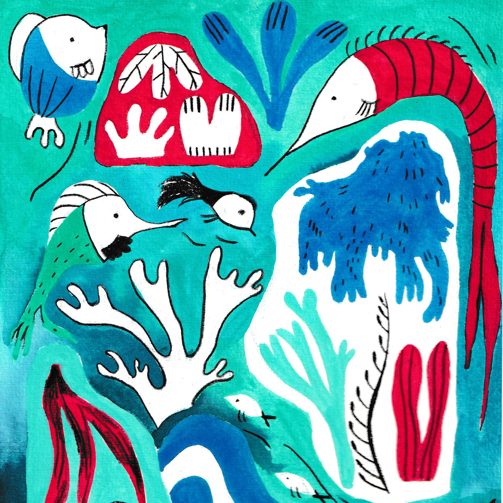 J’aime particulièrement travailler à l’aquarelle, la gouache et le crayon de couleur. Mais j’aime aussi découvrir et expérimenter les techniques d’impressions comme la gravure, le monotype et la sérigraphie. Je fais aussi des personnages en céramique.